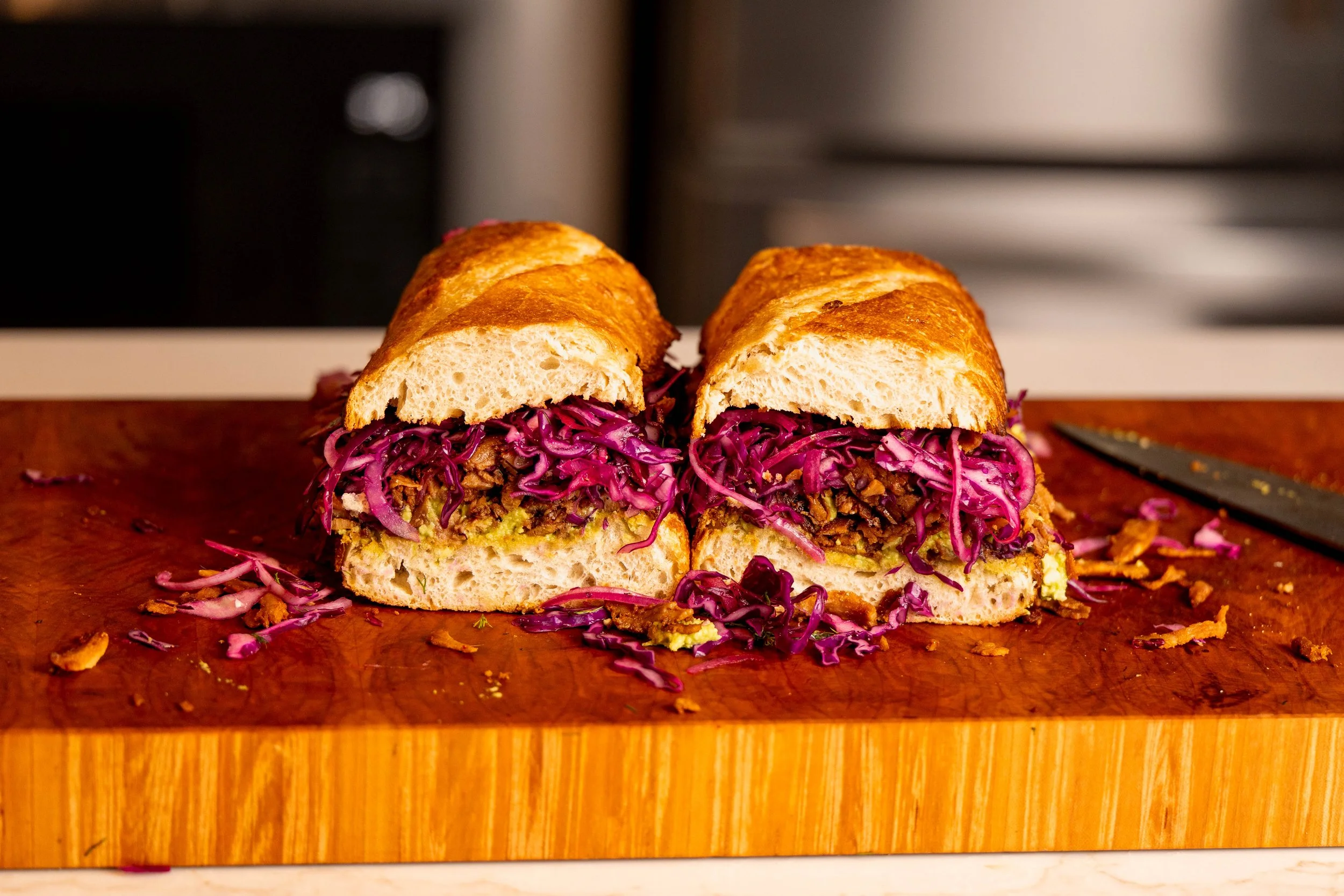 My sandwich meal-prep obsession started when I began shaving tofu thin and marinating it to make cheesesteaks. It was one of those moments where plant-based cooking broke through the health to comfort food paradox I wasn’t aware I’d been perpetuating. Somewhere along the line, people decided that eating plants meant every bite had to taste like something you’d find in a rabbit’s dens, and I was being duped. Plant-based food can be bold, smoky, messy, satisfying, something you actually look forward to. Even though Bugs Bunny made carrots look like fine dining, I have a feeling even he’d set those down to add this BBQ sandwich to his quiver.